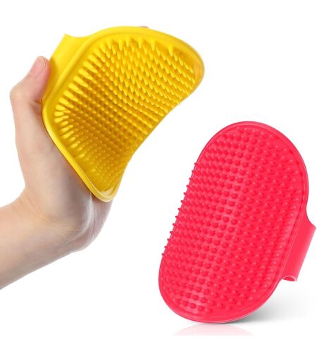 MATERIALS You will receive 2 pieces cat silicone care pads (red pink, yellow). They can be used wet or dry, easy to clean and protect the skin for dog grooming and massaging.[Easy to Use]This cat groomer has a rubber ring handle that can be individually adjusted to the dog's size, fits comfortably in the hand and fits perfectly. Compared to traditional brushes, it removes dog hair easily and quickly.EFFECTIVE MASSAGE This cat scraper features an excellent foaming effect that produces a lot of foam, deeply cleans the pet's coat and removes dead hair and skin cells. It also provides a soothing massage when dry brushing or bathing and thus promotes coat health.DEEP CLEANING Our cat self-grooming device effectively removes pet hair when bathing or massaging, keeps pets clean and neat and promotes skin and coat health.[Multi-purpose]Our cat self-grooming tool is suitable for all pets, both long-haired and short-haired pets. It is suitable for dogs, cats and other pets and ensures a relaxing and pleasant bathing experience ...