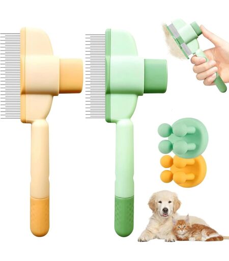 Product packaging: (2 pet brushes + 2 free installation silicone wall hooks) You can attach them to the hooks after the use is complete, which makes it easy to install. It is essential to preserve the health of your pet's coat. Use this brush to prevent tangles and shedding, and ensure a brighter and healthier coat.Soft combing: This brush has stainless steel teeth, rounded and smooth tips, to protect your pet's skin from scratches. The soft, resilient bristles penetrate deep into the coat and absorb excess hair without discomfort.Self-cleaning design: Just press a button to remove hair; no special cleaning is required, making maintenance simple and easy. The long handle is comfortable to hold, non-slip, lightweight and compact, and easy to store and carry.Soothing Massage Effect: Specially designed for cats and dogs, it provides a relaxing massage experience for your pet. The gentle movements and soothing bristles create a soothing effect, allowing you and your pet to fully enjoy brushing.[Ideal Cleaning Effect]Regular use of this flea comb for cats and dogs can effectively remove loose hair, tangles, dandruff and residual dirt. Suitable for dogs, cats and rabbits with short, medium, long, thick, thin or curly hair, it allows your pets to keep a clean and hygienic home. ...