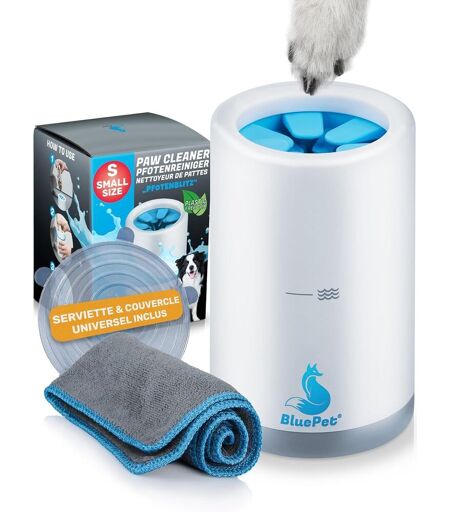 Dog Paw Cleaner - For Clean Paws + Clean Mat: An essential dog accessory in every home. Thanks to the paw cleaner, the paws are perfectly clean after a long walk, before the dirt settles in your apartment.PAW CARE: The dog paw cleaner gently washes paws and gently removes unwanted residues from daily walking. Protect your faithful companion's sensitive paws from dirt, sand, chemicals, snow removal salt. because our dogs don't have shoes.FIND THE RIGHT SIZE: A paw cleaner for dogs of all sizes. XXL up to 8 cm leg width, L up to 6 cm leg width, S up to 4.5 cm leg width. If in doubt, choose a slightly larger size.Easy to clean: the dog paw cleaner is very easy to clean. Simply unscrew, remove the silicone insert and rinse everything with water.BLUEPET: The reliable brand for pet care enthusiasts. Top quality products for your beloved four-legged companions. ...