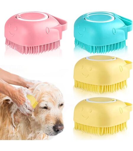 4 Pieces Bath Brush For Dogs And Cats,Pet Massage Brush With Shampoo Dispenser Silicone Grooming Brush For Bathing Pets