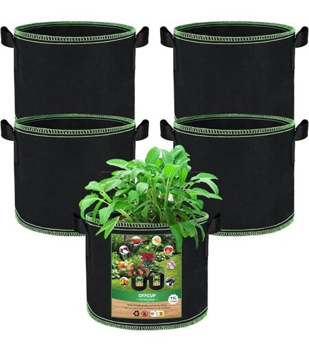 ¿[Qualité supérieure]Paquet de 5 sacs à plantes, 3 gallons (11 litres) - 25x 22 cm ; fabriqués en matériau non tissé de haute qualité, épissés avec des coutures renforcées, pas besoin de s'inquiéter de l'écaillage ou de la fissuration des pots de fleurs. Nos sacs de plantes sont plus solides, durables et peuvent résoudre efficacement le problème de l'accumulation et de la perte d'eau.¿[Conception de la poignée]Poignée en nylon épais, double couture, confortable à tenir, durable et sûre pour déplacer les plantes dans le jardin, la terrasse, le patio ou le porche, réduisant le risque de choc de transplantation, facile à plier et à ranger. Vous pouvez également ajuster l'espacement et l'angle des plantes en fonction de leurs habitudes pour les faire pousser mieux ;.¿[Fond respirant]Les sacs à plantes sont particulièrement adaptés aux terrasses, balcons et jardins où l'espace est limité. Ils favorisent la croissance d""un système racinaire solide et évitent les enchevêtrements de racines qui peuvent survenir lors de la culture dans des pots en plastique. Le bon drainage du sac empêche l'accumulation d'eau et la pourriture des racines, améliore considérablement la survie des plantes et protège contre les insectes.¿[ s] Les sacs de plantation peuvent être utilisés en toutes saisons. Les sacs de plantation de pommes de terre sont très faciles à nettoyer et peuvent être pliés et placés dans un endroit sec et frais. Ils ne prennent pas beaucoup de place une fois stockés et peuvent être réutilisés en continu.¿[Large gamme d'utilisations]Idéal pour planter sur les balcons et les terrasses, et peut également être utilisé comme sac de rangement pour ranger les vêtements sales, les outils d'emballage, etc. Idéal pour cultiver une variété de légumes, fruits, fleurs et herbes, tels que pommes de terre, tomates, ail, oignons, fraises, radis, cacahuètes, etc. ...