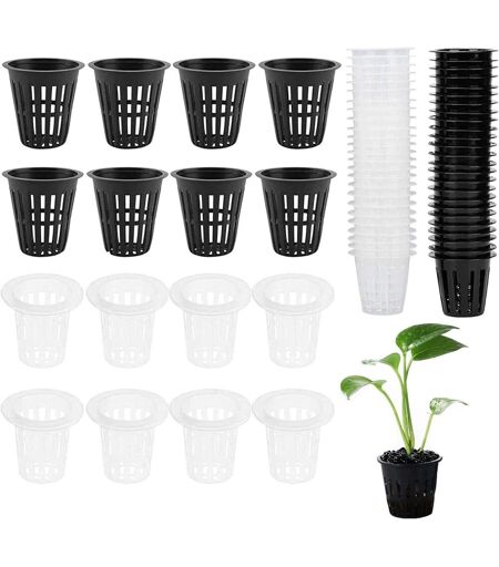 Pot Plantation Hydroponique,60 Pièces Paniers Hydroponiques Plastique,Filet Hydroponique en Plastique,Pots de Jardin Net Cup,pour Culture Hydroponique Aéroponique,Plantation de Fleurs,Jardinage