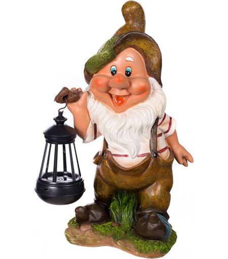 Nf11021-2d Garden Gnome With Solar Light,Large 37 Cm Height,Garden Gnome,Elf With Led Solar Light,