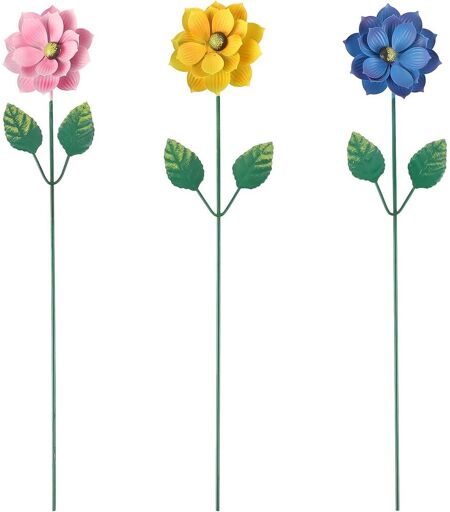 Fine Workmanship: You will receive a set of 3 flower garden ornaments in different colors. Each flower is handmade with ironwork techniques, bright colors, adding a touch of vitality and cheerfulness to your garden.Sturdy and durable: these outdoor garden ornaments are made of high quality hard iron, with a weather resistant coating, which prevents rust and corrosion, and can last a long time, even in windy and sunny weather, without additional maintenance.Quick installation: This outdoor garden decoration is equipped with an iron rod long enough to be easily inserted into the lawn, soil or flower bed. Stable and reliable, it is ideal for various types of outdoor terrain. Arrange them easily to create your own garden corner.RETRO GARDEN DECORATION - The perfect combination of painted tones and craft textures creates a unique rural retro style. Whether in a garden, yard, porch or balcony, it creates a natural and romantic atmosphere.Ideal gardening gift: This creative metal outdoor garden decor not only beautifies your outdoor space, but also makes an ideal gift for your loved ones and friends who are passionate about gardening. Every flower carries warmth and blessings ...