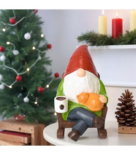 Garden Gnome Statue Funny Resin Drinking Coffee Rocking Chair Waterproof Outdoor Garden Decoration for Terrace,Lawn,Christmas Indoor Decoration