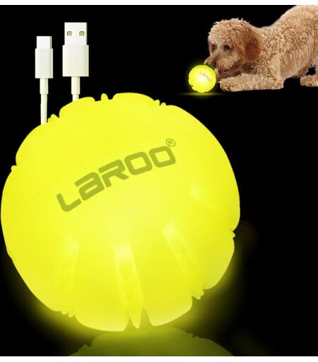 Bright LED light to catch attention: The LaRoo LED dog ball is designed to attract your dog's attention, allows you to light up and have fun and exercise to continue into the night. It is the necessary and cute partner gift for your training dog, play, throw and juggle, have fun with your dog now! NOTE: The dog ball automatically turns off after one minute of rest.It is good for your dog's health: The LED dog ball toy can help clean the dog's tooth, improve exercise ability, improve response time, slow down the speed of eating, kill time and motivate your dog's mind to make the dog more healthy and happy. DO NOT ATTACK THE DOG OR THE HUGE DOG WITH STRONG POWER OF MASTICATION.EASY TO USE AND LONG LAUNCH TIME: One click to turn on/off this glowing dog ball: Continuous bright and off. The size of this dog ball looks like a tennis ball, which can fit most ball throwers. ATTENTION: Please adjust the USB cable and port to make sure that it is TIGHTLY CONNECTED and the dog ball will have a slight intermittent luminous when it is charging.Eco-friendly USB rechargeable: Comes with a built-in USB lithium battery cable to easily charge the dog lead. Simply use a coin to open the lid and connect to other devices with a USB activation port like cell phone charger cable, Mac, laptops, computers, smart TVs, etc.HIGH QUALITY WATERPROOF MATERIALS WITH BETTER VALUE: Made of high quality and food grade silicon materials, environmental and non-toxic and bite resistant. Can provide safety for dog bite. Also provide the complete and worry-free waterproof function at all the time even if in the water. This dog toy is shipped by random color. ...