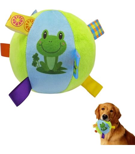 Interactive Plush Dog Ball 12cm Diameter With Grave Tabs,Dog Balls With Bell Inside For Tug Of War,Dog Ball For Small Medium Breed Dog