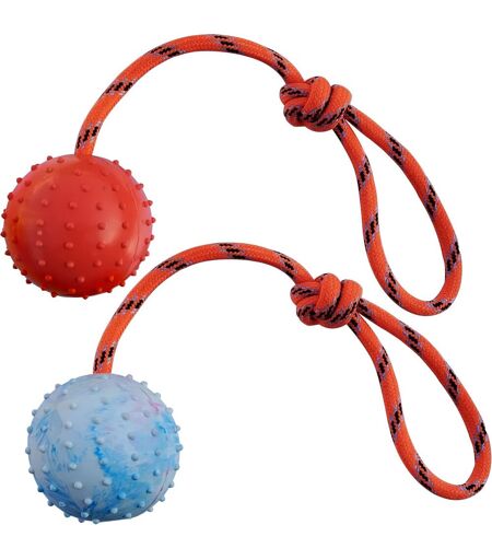 Safety rubber: the training balls for dogs are made of natural rubber and are sturdy and durable. The balls are connected to a strong nylon rope. Dog balls are hollow and their occlusion resistance is lower than that of solid balls. Owners of dogs with strong chewing advise not to buy them.Two sizes of balls: [ Large Ball ] - Diameter 7 cm, rope length 31 cm, weight: 152 g, suitable for medium and large dogs [Trumpet ball]- Diameter 5 cm, rope length 31 cm, weight: 87 g, suitable for puppies and cats.Teeth Cleaning Ball: This chew ball with a pointed surface helps clean the dog's teeth and massage the dog's gums.Interaction and fun: this dog ball with rope is safe, non-toxic, chewable, elastic, flexible and you can throw the ball, order your dog to retrieve it and strengthen your relationship with your beloved dog. The knotted rope is also ideal for pulling and retrieving.100% MONEY BACK GUARANTEE: We are sure that your dog and cat will like the ball and if you are not satisfied, we will give you a full refund. ...