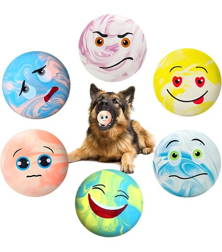 SMILE EYE DOG SUNNING BALLS - You will receive 6 different colors dog squeaky balls and 6 facial expressions. Their bright colors will attract your dog's attention, and the large amount will allow you to replace them as needed.High quality material: These squeaky dog balls are made of high quality latex, which makes them safe, non-toxic, durable, sturdy and bite-resistant. These indestructible balls are an ideal gift for your dog.EASY GUITTING: Each dog squeaky ball emits a fun squeak when your dog bites it. It catches his attention and makes him happy. These indestructible balls have good mechanical strength and can withstand strong pressure without breaking.UNIQUE DESIGN - Squeaky dog balls feature attractive surfaces with raised nubs designed to massage your pet's tongue, clean their teeth and control plaque and tartar. These dog toy balls also encourage interaction and intellectual training between you and your dog. They stimulate their responsiveness and jumping ability, helping them to release excess energy.VERSATILE USE: Good dog squeaky balls help you create a strong bond with your pet and develop intelligence. These toy balls improve your throwing technique and can be used to train your dog to run. Playing to catch and throw strengthens the emotional bond between you and your dog, and your pet will be even more loyal to you. ...
