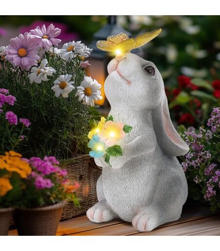 [Unique Figurine] This charming garden statue depicts a rabbit with a luminous butterfly perched on its muzzle, holding a bouquet of flowers between its paws. Crafted from weather-resistant resin, this handcrafted piece combines natural poetry and soft lighting to transform your outdoor space into a true enchanted scene.[Easy to use and energy saving]Just turn on the switch and leave it in the on position. The lamp automatically charges in direct sunlight during the day and turns on automatically in the evening and night. It recharges in 8 hours and provides up to 6-8 hours of lighting without having to worry about electricity costs or replacing batteries.[Superior Quality]This solar garden figurine is made of sturdy resin with excellent workmanship. It is waterproof and fade resistant. In addition, it is suitable for all weather conditions, making it a durable choice for your outdoor space.[Perfect Decoration and Ideal Gift]With dimensions of 22.5 x 14.5 x 11.5 cm, this solar garden statue is an ideal garden decoration. You can display it in your living room, entrance hall, patio, garden and other places. It can provide convenient lighting at night and add a charming atmosphere to your home. Besides, it is a perfect choice for housewarming, Thanksgiving, Christmas for women, family and friends.[After-Sales Service]If you have any questions about this solar garden statue, please feel free to contact us, our experienced customer service team will answer you at any time ...