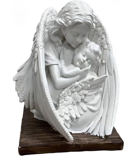 DESIGN - This lovingly designed Tuzsocr angel figurine depicts a protective angel who gently holds a sleeping child in his wings. The precise details of the wings and facial features give the sculpture a special expressiveness and harmony. Ideal as a decorative element in the grave or garden, it symbolizes peace, protection and spiritual security.Guardian Angel Grave Decoration:Place the guardian angel as an ornament on the grave of the deceased. The angel represents a link between the people of the earth and heaven. This allows you to express your love and attachment to your loved one beyond the funeral. A great way to honor a loved one who has passed away but is still with you in mind.Meaningful and beautiful decor:Weeping angel suitable as grave decoration at the cemetery to bring comfort and protection; as a contemplative patron saint in the garden as a garden decoration; or as a comfort dispenser inside on the shelf and table to express memory, love and healing. (Statue size: 4 x 3.8 x 4.7 inches).HIGH QUALITY & WEATHERPROOF OUTDOOR DECORATION - Each of our Tuzsocr outdoor garden statues is made from high quality materials including durable resin and hand painted with UV resistant paint. The outdoor statue is strong and durable, withstands rain, snow or scorching sun without cracking, fading or rusting. Therefore, it retains a beautiful appearance for years to come.EXPRESS YOUR LOVE AND COMPASSION Our angel sculpture can be given to everyone as an inspirational gift that soothes and soothes their heart. It can also be given as a sympathy gift to someone who has lost a loved one to express your concern and hope that they will receive healing power.Customer Satisfaction Guarantee: Each Tuzsocr Angel Statue is handmade and may have slight irregularities. In case of any problem, we offer free exchange and professional advice. We take customer satisfaction very seriously. For any questions or requests, our team is at your disposal and offers you first-rate customer service. BUY WITH CONFIDENCE - Your satisfaction is our top priority. ...