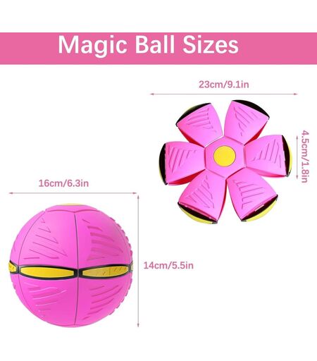 High Quality Material The magic ball is made of unique soft rubber material, comfortable to grip, portable, smooth and durable, wear and pressure resistant and not easy to break.Funny design: In normal state, it is a ball, by pressing the toy ball, it turns into a frisbee, you can switch from one shape to another as you like, a lot of fun. But it is also a perfect toy for kids to interact with their dogs.STRENGTHENS THE BODY - Playing with the magic ball, you need to run and pick up the ball to promote bone growth while developing coordination and flexibility.Interactive Toy Magic Ball is an interactive stress relief toy that can be used both for interaction with pets and for interaction between parents and children.Ideal Gift:The magic ball toy can make your childhood colorful, it is a good gift for family or friends on birthday or party, and it is the best choice to train your pet's motor skills. ...