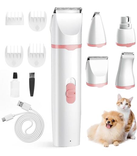 4 in 1 Cat Clippers - With 4 removable cutting heads (full body, partial body, paws, claws), the clipper covers face, ears, body, paws and nails. Easy installation for economical pet grooming, ideal for daily care or professional use.[Quiet and gentle for sensitive pets] Cat shaver with noise level below 45dB and soft stainless steel ceramic blades gently cuts the machine without pulling hair or scaring animals. Perfect for nervous dogs or cats who are afraid of noise.[USB Rechargeable & 2 Hours Continuous Operation] Charge via USB-C cable in just 1.5 hours - a full charge is enough for 2 hours of continuous cutting. Cordless operation allows for free movement, ideal as a paw clipper for dogs at home or on the go. Lightweight design at only 92g for effortless handling, even for fine paw or face cutting jobs.SHARP BLADES & 4 COMBS - Premium stainless steel and ceramic blades stay sharp for a long time and cut the coat effortlessly. 4 combs (3mm/6mm/10mm+specific comb) control hair length accurately, from short facial hair to long hair.Safety and simplicity for beginners: two speeds (6000-6500 rpm) adapt to different coat types. IDEAL FOR SMALL AND MEDIUM PETS - NOTE: The full body cutting head is not suitable for large dogs, but suitable for partial scissors. Easy cleaning after use with the brush provided ...
