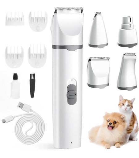 4 In 1 Dog Cat Clipper Usb Quiet Animal Clipper With 4 Multifunctional Heads For Eyes,Ears,Paws And Claws (Grey)