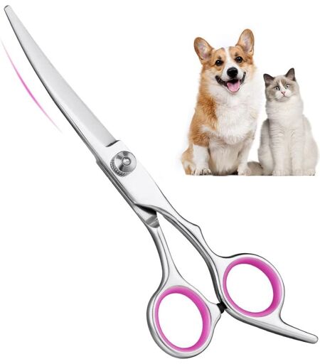 Safe and easy to use: The stainless steel dog grooming scissors is designed with a blunt tip to give your pet maximum safety when cutting sensitive areas such as face, ears, eyes, nose, paws. It can accurately cut your pet's facial hair without worrying about touching your pet's skin. Make sure your pet does not get hurt by using it.[Ergonomic & Comfortable Design]Curved scissors with an offset handle and slightly curved thumb ring for extremely comfortable grip and minimizing stress and discomfort. perfect.¿[Sharp Stainless Steel Scissors for Dogs Quiet]High quality stainless steel, polished, high hardness, durable. The scissors have a total length of 6 inches and feature sharp edges, durability and a smooth finish.¿[Manual Adjustable Tension Screw] The toilet scissors for dogs can adjust the tightness or remove the scissors for sharpening and cleaning. The tightness of the blade can be adjusted according to the thickness of the pet hair by tightening or loosening the screw in the center of the fur scissors for easy use.Specially designed for your pet: Dog grooming scissors is perfect for easily grooming your pet at home, the delicate dog hairdressing scissors can meet all your grooming needs. ...