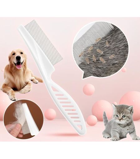 Sturdy and Durable The lice combs are made of stainless steel, resist wear during long-term use and are easy to clean by simple rinsing.Ergonomic Handle The dog flea comb with ergonomic handle ensures a comfortable grip when grooming your pet and makes it easy to use for a long time.Detailed Care This flea comb can remove tangles and loose hair. It is perfect for promoting blood circulation and massaging the skin. Dense steel tooth comb helps you easily remove floating hair and prevent tear stains.Comfortable and Safe The rounded tips of this cat comb are skin-friendly, nourish and massage for a healthy coat, prevent pet snagging and injury, and suitable for dogs and cats of all sizes and breeds.Wide Application This cat flea comb can remove lice, fleas, tears, tangled hair, scabs and mucus. Suitable for dogs and cats of all body types ...
