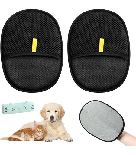 EFFECTIVE DOUBLE SIDED Grooming - Discover our innovative double-sided pet hair glove specially designed to quickly remove loose hair. Soft silicone teeth ensure gentle yet effective care that your pet will appreciate.Compact and easy to wear: with a reusable animal hair roller, which you can use before going out to remove tiny floating hair on your body. Compact and convenient, you can carry it with you, whether you go out or travel.COMFORTABLE TO WEAR The pet grooming gloves have an elastic cuff at the wrist for easy wearing and suitable for most hand shapes. No need to tie or stick the jacket to ensure a trouble-free grooming process.High-quality materials: made of breathable mesh fabric, the gloves are thick, wear-resistant and bite-resistant, which allows them to last a long time without losing performance.Versatile Function These pet care gloves are great for cleaning, suitable for cats, dogs, rabbits and other furry pets of all sizes and are also suitable for scrubbing clothes, cleaning sheets, sofas, carpets, beds and other furniture for cats and dogs to get rid of hair. ...