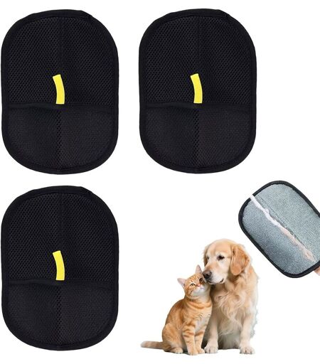 3 X Pet Hair Removal Gloves,Cat Hair Removal Gloves For Removing Pet Hair,Reusable For Detangling And Cleaning Hair On Sofa And Clothes