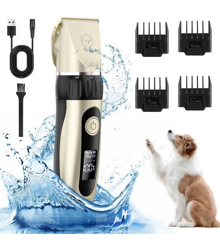 ¿[Safe & Reliable Dog Hair Clipper]YAZEKY pet hair clipper is a professional electric hair trimmer. This hair clipper uses pet-specific cutting head with sharp and durable blades and low friction. It also has a powerful motor that will not pull the hair of your lovely dog or cat, making the entire cutting process always safer for you.¿[Easy to Use]Turn on the hair clipper switch to use quickly. This pet hair cutting set comes with a cutting head in 4 lengths (3/6/9/12mm) and 3 fine adjustment knobs for blade length (0.8-2mm). You can accurately choose the right length to meet the cutting needs of dogs and cats of different sizes.¿[Ultra Quiet Hair Clipper]The low noise pet hair clipper for cats and dogs is equipped with quiet and low vibration technology. This dog clipper operates at a noise level below 58 decibels and the motor vibrates at low frequency for quiet operation. To make your pet feel comfortable while grooming, you can also cut the fur quickly and easily.¿[USB Charging & LED Smart Display]This dog clipper has a built-in 1200mAh large-capacity lithium battery and supports charging USB devices. It can be fully charged in 3 hours and work continuously for 120 minutes. The professional dog clipper is equipped with an LED display and the power display is intuitive, allowing you to easily charge the pet hair trimmer in time.¿[Easy to Clean]Pet hair clippers can give your pets a more comfortable grooming experience. The blades of the dog razor are removable and can be easily replaced and cleaned. Please do not put the whole machine directly into the water to avoid damaging the hair clipper. ...