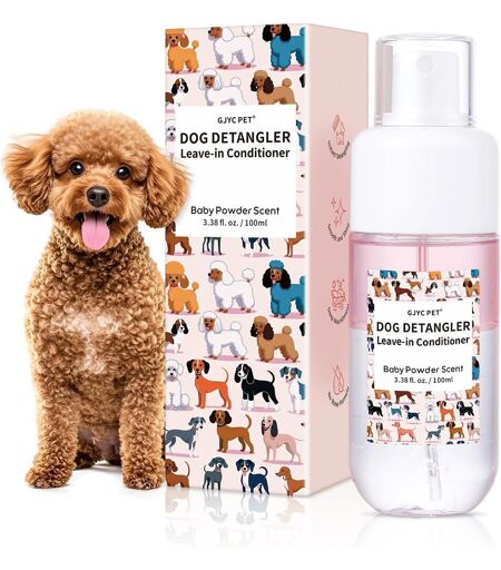 EFFORTLESS DETANGLE FOR A SILKY COAT - Our advanced dog detangling spray quickly dissolves stubborn knots and tangles, turning your pet's coat from mess to smooth. It helps to remove tangles, leaving your dog's fur silky, shiny and easy to brush. The formula works effectively on small knots and tangled areas, making grooming a breeze.SAFE & NOURISHING INGREDIENTS Infused with natural oils like coconut oil, jojoba oil and squalane, this detangling spray deeply nourishes and conditions your pet's coat. Coconut oil hydrates and protects, jojoba oil regenerates skin health, and squalane improves hydration and shine. These gentle, pet-safe ingredients ensure your dog's coat stays healthy, shiny and well maintained.FRESH BABY SCENT - Our detangling spray is infused with a delicious baby powder scent that leaves your dog smelling fresh and clean after every grooming session. This subtle and pleasant scent is perfect for deodorizing and refreshing your pet's coat without overwhelming their senses.EASY TO USE AND CONVENIENT - With its hassle-free spray application, this detangler can be used directly on your dog's coat. Simply spray the spray on matted or matted areas, then gently comb or brush. No rinsing required. It is a quick, easy and effective addition to your regular grooming routine.SUITABLE FOR ALL DOG BREEDS AND COAT TYPES - Whether your dog has short, medium or long fur, our detangling spray is versatile and suitable for all coat types. It is perfect for dogs with thick, long or curly hair that tend to line easily. This conditioning spray ensures that every dog, regardless of breed or coat texture, enjoys a smooth, tangle-free finish. ...