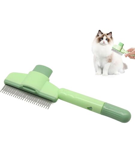 Cat Grooming Comb,Pet Combs,Self-Cleaning Cat Comb For Long Hair And Short Haired Cats (Green)