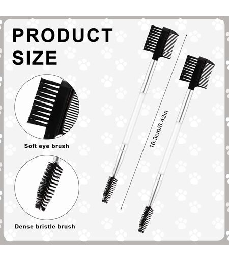 Package includes: you will receive 2 pieces of dog eye combs, with a white handle, enough quantity to meet your daily needs for pet face grooming.Product details: The dog eye cleaning brush is about 16.3cm long. The bristles are made of artificial fibers and the handle of the brush is made of plastic, which is not easily damaged and you can use it without any worries.Easy to use: the comb teeth of the dog's eye comb are rounded, without tips; with soft bristles, providing a comfortable using experience and a quality grooming process for your pet.Double head design: our dog tear tear suit adopts 2 in 1 double head design, including comb and brush, sturdy and reliable, beautiful and practical.Wide application: this Bog Eye Booger moving brush is suitable for most small pets, and it is versatile and practical, so you can also use it to prepare your pet's eyebrows and eyelashes. ...