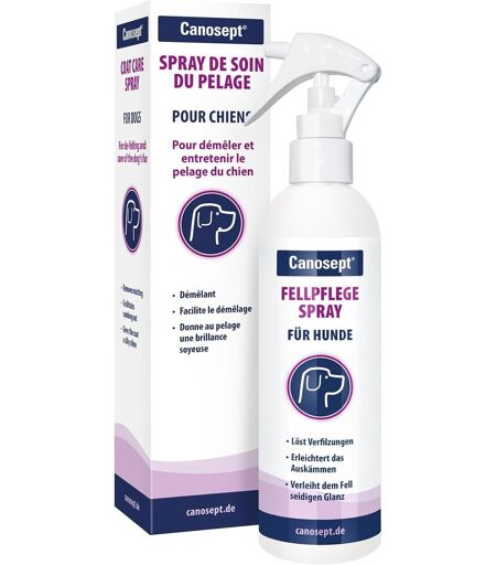 Dog coat care: With Canosept coat care spray, shaggy and brittle dog hair can be easily combed - it loosens knots and ensures silky shiny hair.Practical and effective coat care spray: the fur spray seals each hair with a protective film, so even dirt, dust and water are repelled - the usual snags and tangles are finished.Dog fragrance: The care spray works organically, is particularly gentle on dogs and contains no alcohol or solvents. Thanks to the pump spray, it is ideal for dispensing - whether on short or long hair.Dog Cleaning Spray with the Canosept Dog Care Range, Your Sweeties Can Be pampered all around and feel good/No more annoying knots or endless combing - for happy dogs and owners.Made in Germany ...