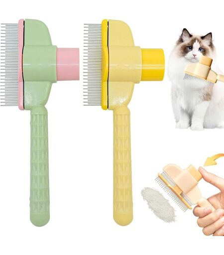 2 Pack Self Cleaning Pet Brush Grooming Comb For Short And Long Hair With Self-Cleaning Function (Green & Yellow)