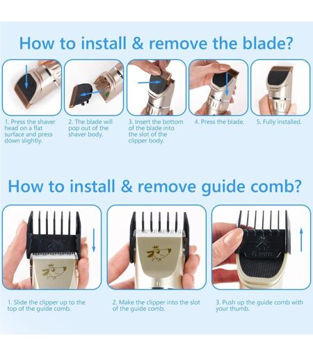 Safe and effective performance: The combination of a stainless steel blade and a removable ceramic blade ensures a safe haircut without scratching your pet's skin. Removable blades are easy to clean and maintain. With 3 adjustable speeds, you can choose the right speed according to your pet's breed and hair thickness to ensure efficient work.Comfortable & Painless: VSSHE professional dog clippers combine titanium alloy blades with movable ceramic blades for efficient and long-lasting cutting. to offer excellent cutting performance. These won't rust or dull quickly, and the blades are sharp enough to last a long time. Removable blade for easy replacement and cleaning. They retain their cutting power longer without pulling the dog's hair.Various lengths required: VSSHE electric animal clipper allows you to cut lengths between 0.8 mm and 2 mm. Dog clipper with 4 combs (3mm/6mm/9mm/12mm), safe, easy and convenient, the combs are suitable for different hair lengths, and the detachable guide comb allows quick and easy comb changes for versatility.Rechargeable wireless pet clipper: With a built-in 1200 mAh high-capacity lithium battery, VSSHE dog clippers can work continuously for 180 minutes, which is enough for a complete haircut for pets of all sizes. And with the USB cable, it can be fully charged in 3 hours. Smart LCD display shows current speed and remaining battery charge. Battery indicator: 20%, 40%, 60%, 80%, 100%.Silent and comfortable cutting experience: equipped with a 3.7V DC silent motor and a high-quality brass shaft, ensuring low noise and minimal vibration. Noise levels below 60 decibels ensure your pet's comfort throughout the grooming process. VSSHE electric dog clipper helps your pet feel comfortable and not worry about haircut. ...