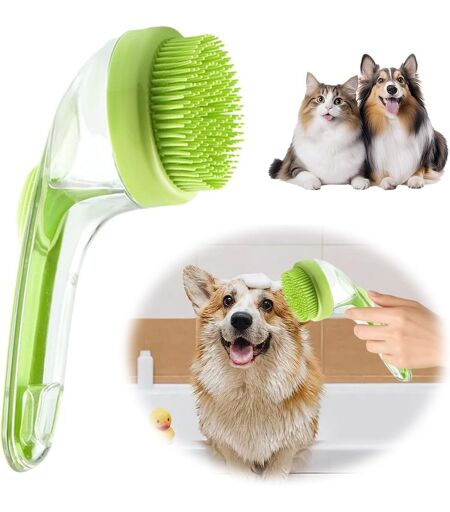 Dog Wash Brush With Soap Dispenser Dog Bath Brush Soft Silicone Long Handle Washing Magic Cat Bath Brush Green