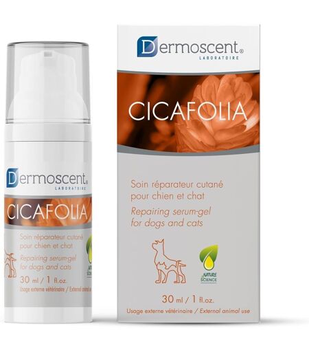 ¿ Formulated with plant-based active ingredients like plantain extract, copper, zinc and niaouli essential oil, Cicafolia is a natural gel-serum designed to protect and soothe weakened skin areas.Non-greasy, film-forming texture creates a protective barrier on the skin's surface Does not stick or stain Ideal for application to localized areas.Easy to use on dogs and cats, regardless of age or hair type Suitable for sensitive or delicate skin.30 ml bottle with practical dosing pump targeted and hygienic application, even in hard-to-reach areas.¿ No added fragrance No parabens High skin tolerance Made in France External veterinary use only. ...