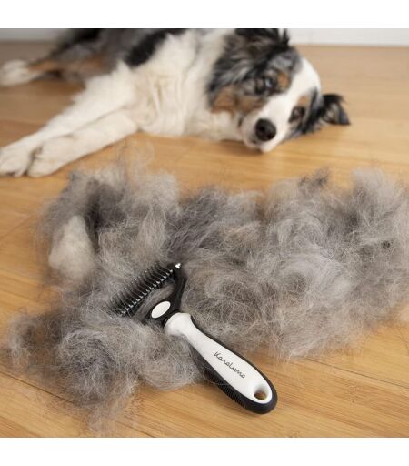 Gentle coat care for your cat or dog - the KaraLuna brush glides gently over your cat or dog's coat thanks to its rounded head. It removes loose and tangled undercoat without pulling or stressing your pet.Unbinds tangled areas - Thanks to the thin blades on the inside, the tangled undercoat is combed effectively and painlessly.Soft on the top coat - The thin blades are gentle on your pet's upper hair. With the KaraLuna undercoat brush, easily detangle hair knots.Effective combing and refining - Extra-large brush head quickly removes loose and tangled undercoat. This dog brush is perfect for long-haired dog breeds such as Australian Shepherds, Labradors, St Bernards or Border Collies.HIGH QUALITY AND PRECISION - The KaraLuna detangling comb has 9 + 17 precision blades. Use the 9-blade grate side for particularly dense and matted coat areas. The 17 blade side is ideal for deep brushing and detangling coat. ...
