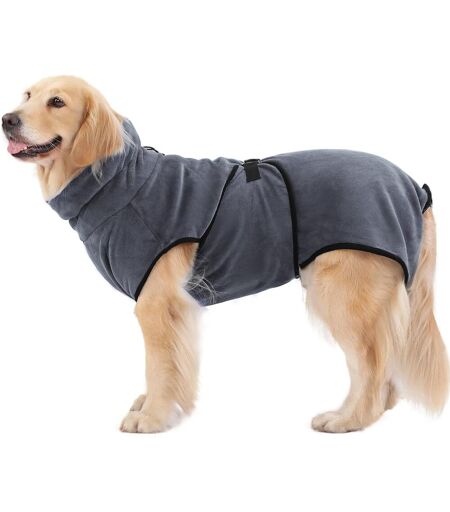 Super Absorbent Microfibre Dog Bathrobe For Bathing Beach And Rain (Grey,M)