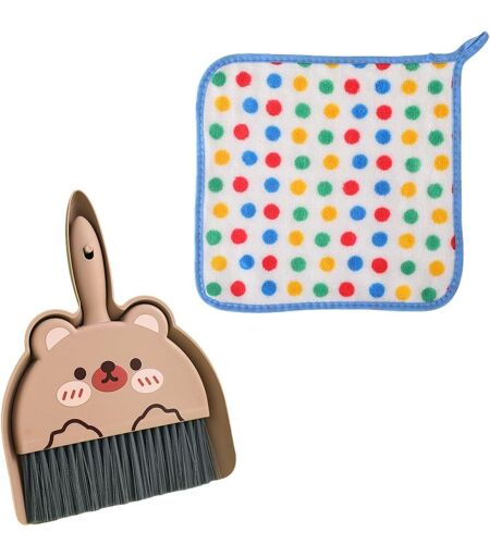 1 Set Bear Broom,1 Cloth,Mini Dustpan & Hand Broom,Table Broom with Shovel,Broom & Scoop Set for Small Animals