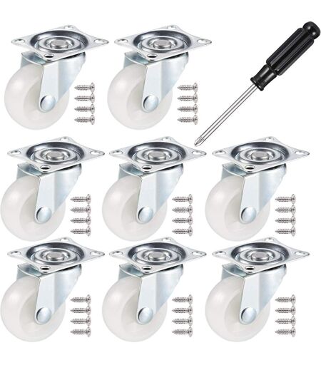 [Durable and Flexible Ball Bearing]With double ball bearing swivel heads, heavy load swivel casters can rotate up to 360 degrees and move freely. The axis of the swivel casters have double ball bearing swivel head, which is better than traditional solid bearings. The furniture casters can therefore be used for several years, even for frequent and commercial use.[Sturdy and Durable]With the elasticity of rubber casters combined with the metal structure which is sturdy and durable, the casters for furniture work solidly. Polyurethane (PU) swivel castors neither scratch the floor nor leave marks on the floor and are safe for floors of all types.[Flexible and Noiseless]The heavy trolley swivel casters can rotate 360 degrees. Industrial wheels, like a skateboard, move freely and smoothly, even on hard surfaces. The wheels are sturdy and make little noise.[Easy to Use]The swivel casters come with the necessary screws and a screwdriver. You can assemble them very quickly. Even if you are not natural DIYers, it is easy to install them.[Wide Application]These heavy duty castors can be used flexibly for all applications. The swivel casters are suitable for DIY your home, garage, and bedroom. Swivel casters are ideal for furniture, office chair casters, bed casters, coffee table casters, plant stands, shelves, toy box, coffee table casters, workbench casters; even for garden gate casters. ...