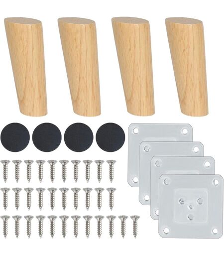 Set Of 4 Wooden Furniture Legs 12cm With Mounting Plate,Screws And Non-Slip Mat,Tilted Legs For Sofa,Bed,Cabinet,Tables And Chairs