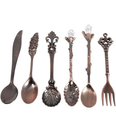 6 Pcs/Lot De Couverts Vintage Cuillère À Dessert Cuillère À Café Cuillère À Café Crème Glacée Cuillère Fourchette De Fruits En Métal De Royal Mini Sculpté Vaisselle Cuillère