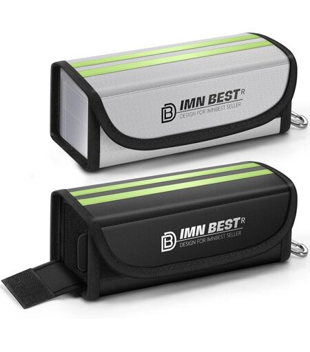 ¿ Material: Size: 18.5 x 8 x 7 cm, Made from high quality and high resistance flame retardant materials, the surface is covered with silicone to better insulate from fire. It has the functions of high temperature resistance, radiation protection and explosion protection.¿Unique Night Reflective Tape Design - Enjoy the night reflective strip to find them in the dark night. Besides storing batteries, it can also be used to store valuables, mobile phones, cash and various certificates and documents.SAFE AND CONVENIENT DESIGN: The long top side flap is fully covered and protected by a strong Velcro fastener. For added stability, the Fire Safety Bag has a carabiner that can be carried and attached to a bag or bike. It is more comfortable to wear, which allows you to carry and charge it at any time.¿WHY DO YOU NEED AN E-BIKE LIPO BATTERY BAG - Do you know the potential dangers of Lipo batteries? As soon as the battery is short-circuited, it immediately generates a high temperature and ignites spontaneously, the double-sealed velcro and zipper design make the inside of the fire bag is in a low oxygen state, and the fire will naturally go out.¿Widely Used - Suitable for all types of batteries, like lithium polymer, mobile phone, model airplane, unmanned aerial vehicle, mobile power, car starting power, etc. And suitable for lithium battery protection, NiMH battery protection, all kinds of battery protection ...