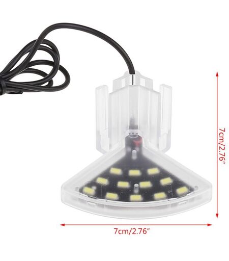 Lumière blanche EU 100-240V LED à Clip pour Aquarium, ampoule d'éclairage d'aquarium, lampe de croissance de plantes aquatiques100% neuf et de haute qualitéCaractéristiques:Mettez en évidence 5730LED perles de lampe.Abat-jour transparent en acrylique, forte pénétration.Les perles de la lampe sont disposées en forme d'éventail et recouvertes uniformément d'aquarium.Pris en sandwich dans l'angle de l'aquarium, ne prend pas de place.L'épaisseur est jusqu'à 7mm, et le niveau de lumière convient aux petits aquariums de 10-20cm.Lampe d'aquarium uniquement, les autres accessoires de démonstration sur la photo ne sont pas inclus!Spécification:Type: lampe D'aquariumMatériau: PlastiqueDisponible:Puissance: 3WTension: 100-240VCouleur: BlancTaille: hauteur: environ 7 cm/2.76 po; Longueur: environ 7 cm/2.76 poQuantité: 1 PcNote:Veuillez permettre une erreur de 0-1cm en raison de la mesure manuelle. Veuillez vous assurer que cela ne vous dérange pas avant d'enchérir.En raison de la différence entre les différents moniteurs, l'image peut ne pas refléter la couleur réelle de l'article. Merci!Le forfait comprend:1 x lampe D'aquarium ...