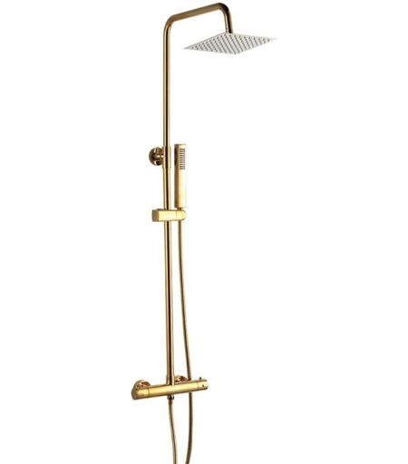 BAGNOCLIC Colonna doccia Gold con rubinetto termostatico Soffione a pioggia quadrato, altezza regolabile, sistema anticalcare