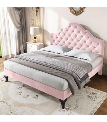 Dans Les Nuages - Lit double 140x200 cm, tissu velours, avec tête de lit réglable en hauteur, sommier à lattes, lit adulte capitonné, style Classique