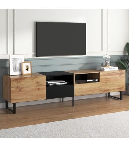 Dans Les Nuages - Meuble tv 190 cm, avec 2 tiroir, 2 portes, 2 compartiment ouvert, style scandinave, Commode tv en chêne sauvage - Marron