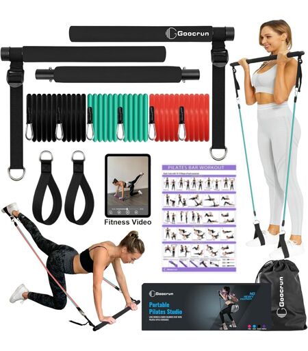 Ensemble De Barres De Pilates Et De Bandes De Résistance Avec Poignées,Salle De Sport Portable À Domicile-Livré Avec Des Affiches Et Des Vidéos De Fitness.[K1201]