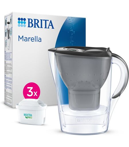 Carafe Filtrante Marella Graphite (2,4l) Incl 3 Cartouches Filtrantes Eau Robinet Maxtra Pro All-In-1 Réduit Pfas,Calcaire,Chlore,Certaines Impuretés Et Métaux Indicateur Temporel