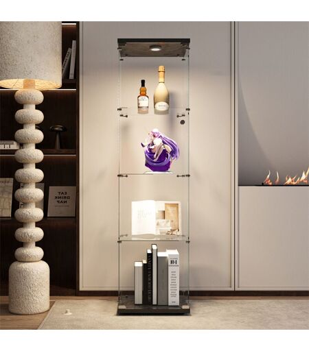 Fortuna Lai - Vitrine en verre led 4 étagères, 16.73x14.37x64.56in, étagère en verre avec portes sur pied, noir