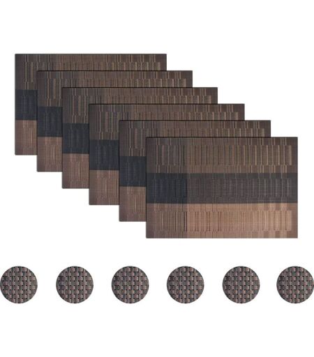 Sjzg-Lot De 6 Sous Assiette De Table, Tapis De Table A Manger Élégants En Vinyle Avec Dessous De Verre Lavables (45 X 30 Cm) Marron, Bambou 1 : Marron., 6pc Placemats And Coaster
