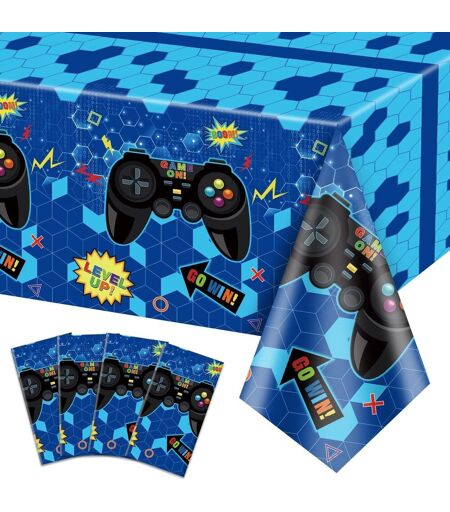 Sjzg-Lot De 4 Nappes De Jeux Vidéo - Décorations De Fête En Plastique - Décorations D'anniversaire Bleues Pour Garçons Et Enfants - 130 X 220 Cm