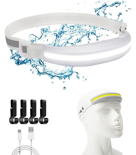 Lampe Frontale Led Rechargeable,Lampe Frontale 230°,Ultra Grand Angle,Ipx4,Étanche,4 Modes D'éclairage,Phare Led Pour La Course,Le Camping,La Randonnée (Blanc)