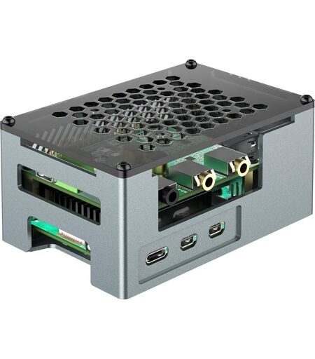 Boîtier en aluminium pour Raspberry Pi 5 avec ventilateur PWM 3510 dissipateur thermique passif Boîtier en alliage d'aluminium adapté pour DAC/DAC PRO/AMP/AMP PRO/RS485&CAN; Hat et la plupart