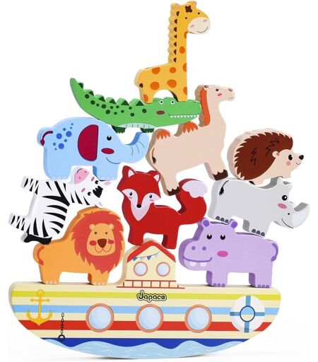 Stackable Noah's Ark Toy: This stackable Noah's Ark toy contains 1 Ark and 10 cute animal shapes (giraffe, crocodile, zebra, fox, hedgehog, etc.). Play and bring children endless imagination.Creative Montessori Toy 3 Years: The Noah's Ark stacking toy is enough for children to play hours away from electronic screens. This Montessori balance toy is designed for everyone from 3 years old to develop hand-eye coordination, concentration and thinking skills. Great learning toy for 3-6 year olds in class, nursery or home at school.Safety Guarantee: Ideal size for small hands, not only easy to grip, but also to prevent accidental swallowing. Made of high quality wood, odorless and non-toxic. Montessori Noah Ark wooden toys have smooth edges without burrs, so they do not pose a danger to the safety of children.Parent-Child Interactive Toys: Parents can tell babies the story of Noah's Ark through role-playing games and learn about Catholic or Christian baptism. Let children with their parents Montessori toys to significantly improve the parent-child relationship. Parents can help children get started easily and gain confidence, and in the process of continuous encouragement, they stimulate children's imagination.Ideal gift for children: wooden toys from Noah's Ark can be ideal Christmas, birthday and party gifts for toddlers, girls, boys aged 3, 4, 5, 6 years. Kids will love Noah's Ark montessori toys every day as a gift. Toddlers can play Noah's Ark stacking game at home indoors or outdoors with relatives or friends.Warning:Not suitable for children under 3 years. For use under adult supervision.Warning:To be used under the direct supervision of an adult ...
